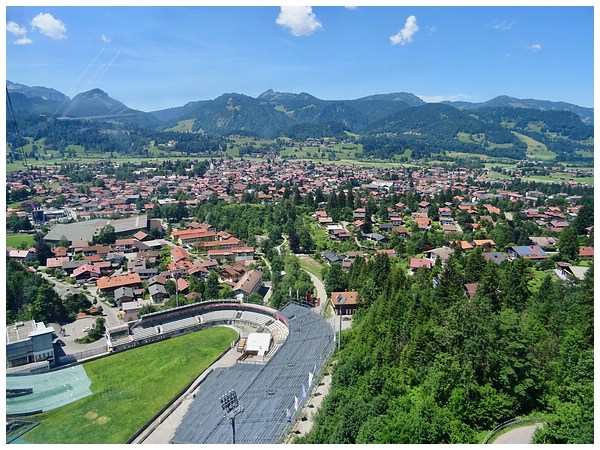 Wir erreichen wieder Oberstdorf. Im Bildvordergrund die Auslaufzone der Schattenbergschanze.