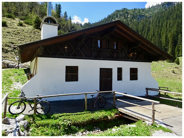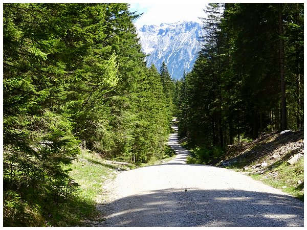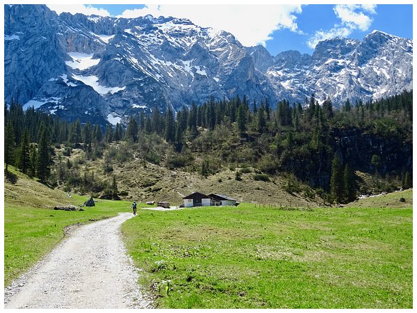 Vor uns liegt die Wettersteinalm mit der mächtigen