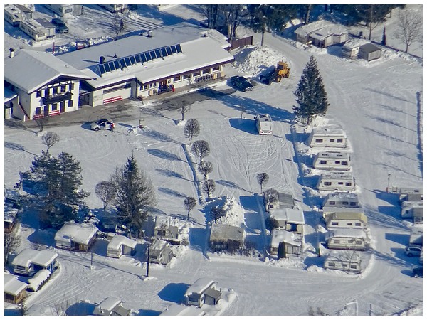 Am unteren Bildrand erkennt man die Start- und Landebahn des Flugplatzes.