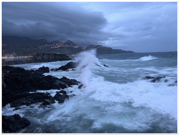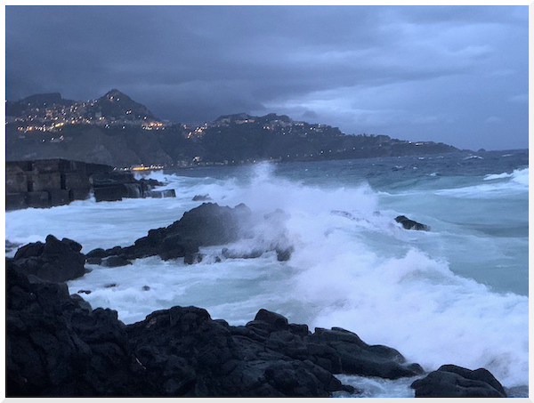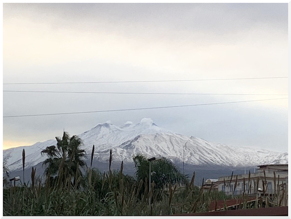 Der letzte Tag in Giardini Naxos geht zu Ende. Über Nacht hat es am Ätna ordentlich geschneit.