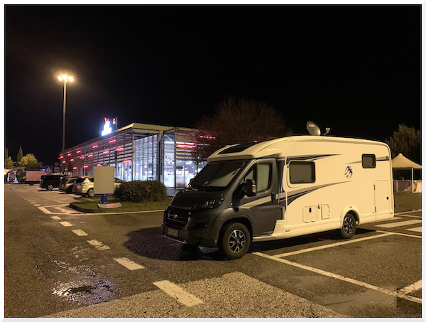An einer Autobahnraststätte zwischen Rom und Florenz übernachten wir.