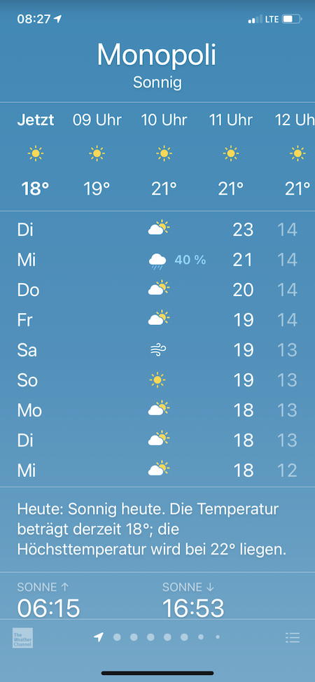 Wir sind zurück in Monopoli und genießen wieder das
