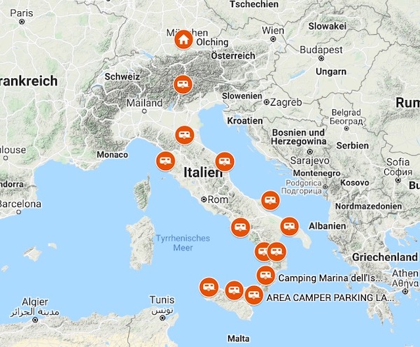 die Halbinsel Italien umrunden.