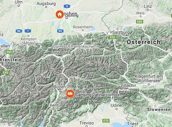 Nur mit Müh und Not finden wir auf dem Campingplatz in Vigo di Fassa noch ein Plätzchen.