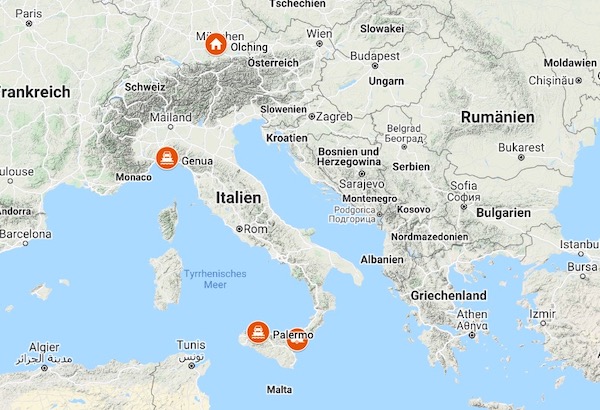 Diesmal führt uns die Reise über die Schweiz und Mailand nach Genua. Von