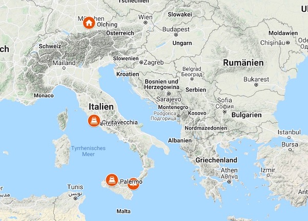 Am Vormittag des nächsten Tages verlassen wir in Termini Imerese die Fähre.